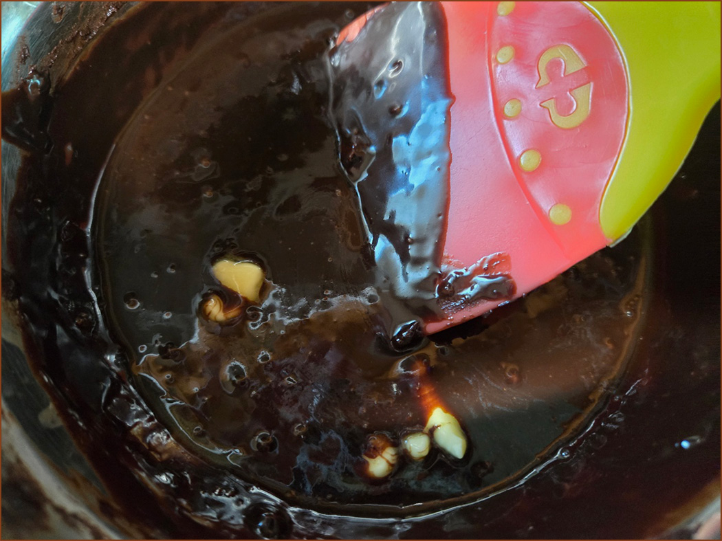 4. 초콜릿이 모두 녹으면 버터를 넣어서 녹여 섞어줍니다.