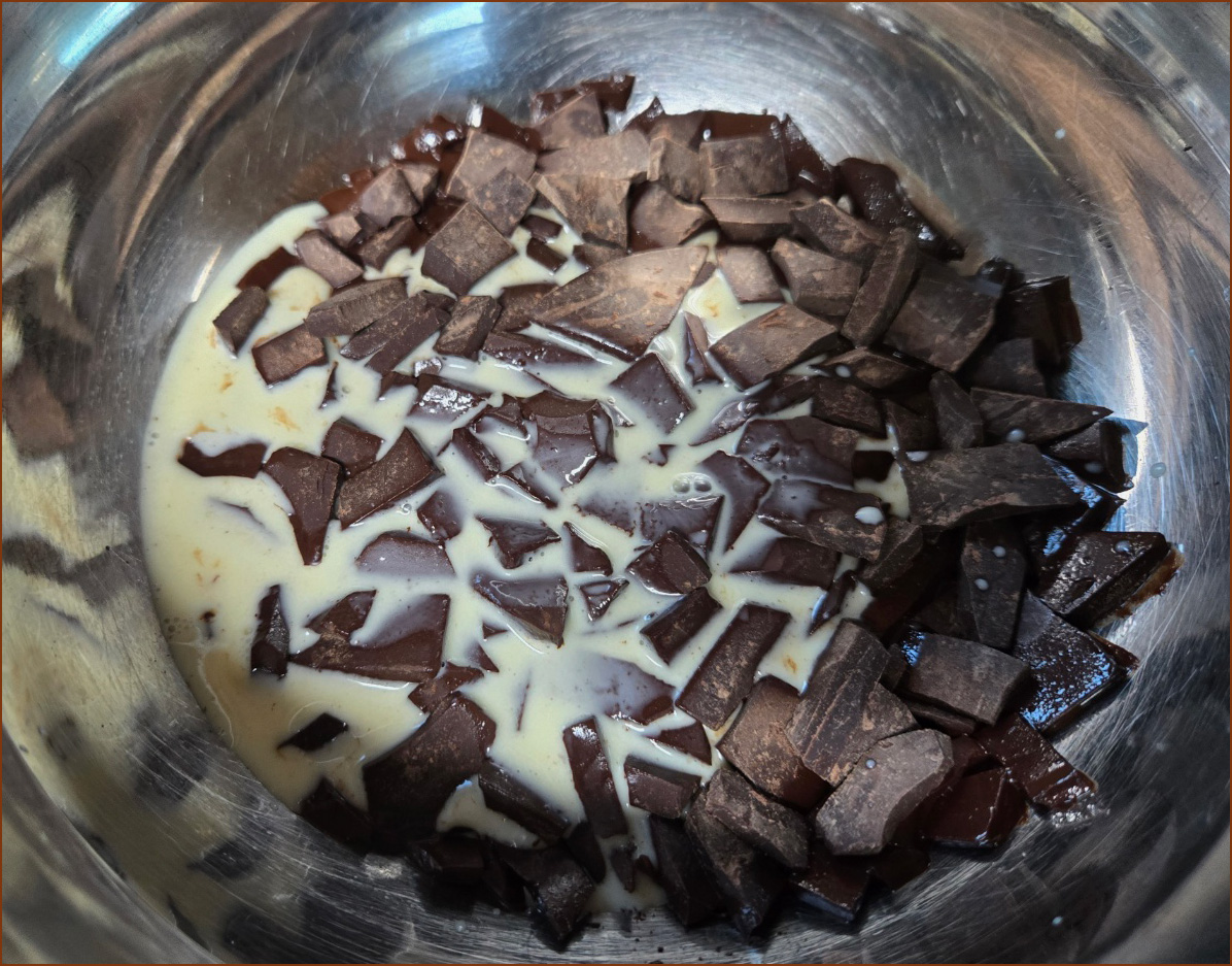 1. 초콜릿을 잘게 잘라서 뜨거운 물 위에 중탕시켜둡니다.