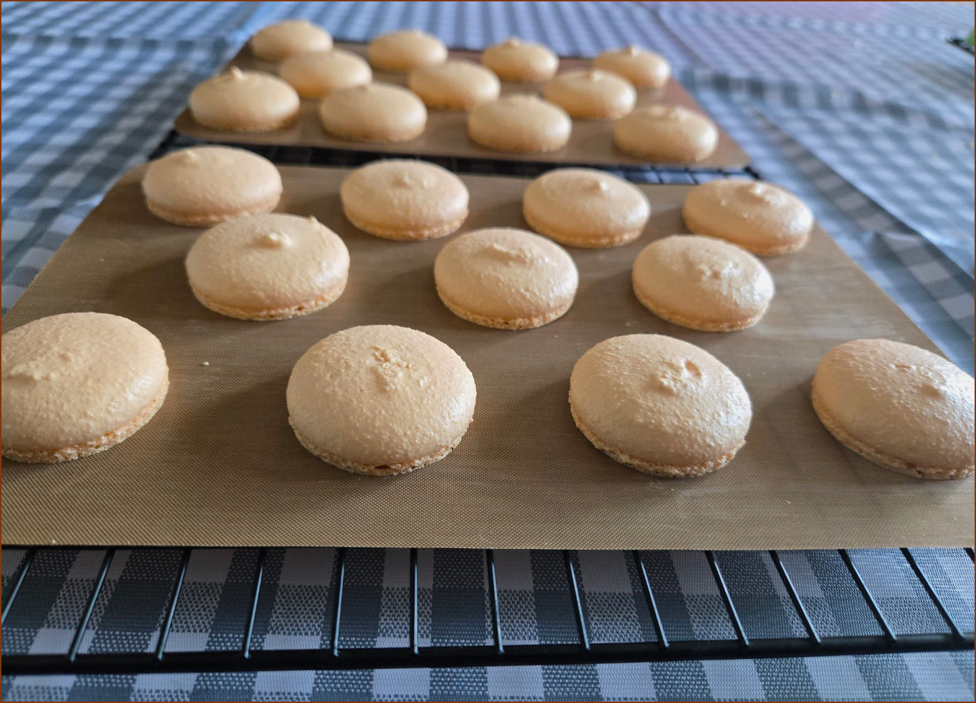 13. 굽기가 완료되면, 식힘망 위에 실리콘 페이퍼를 그대로 옮겨줍니다. 완전히 식으면 떼어줍니다.