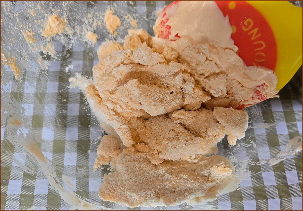 6-2. 반죽을 볼 옆면에 살살 펴발랐다가 다시 모으는 작업을 진행합니다.