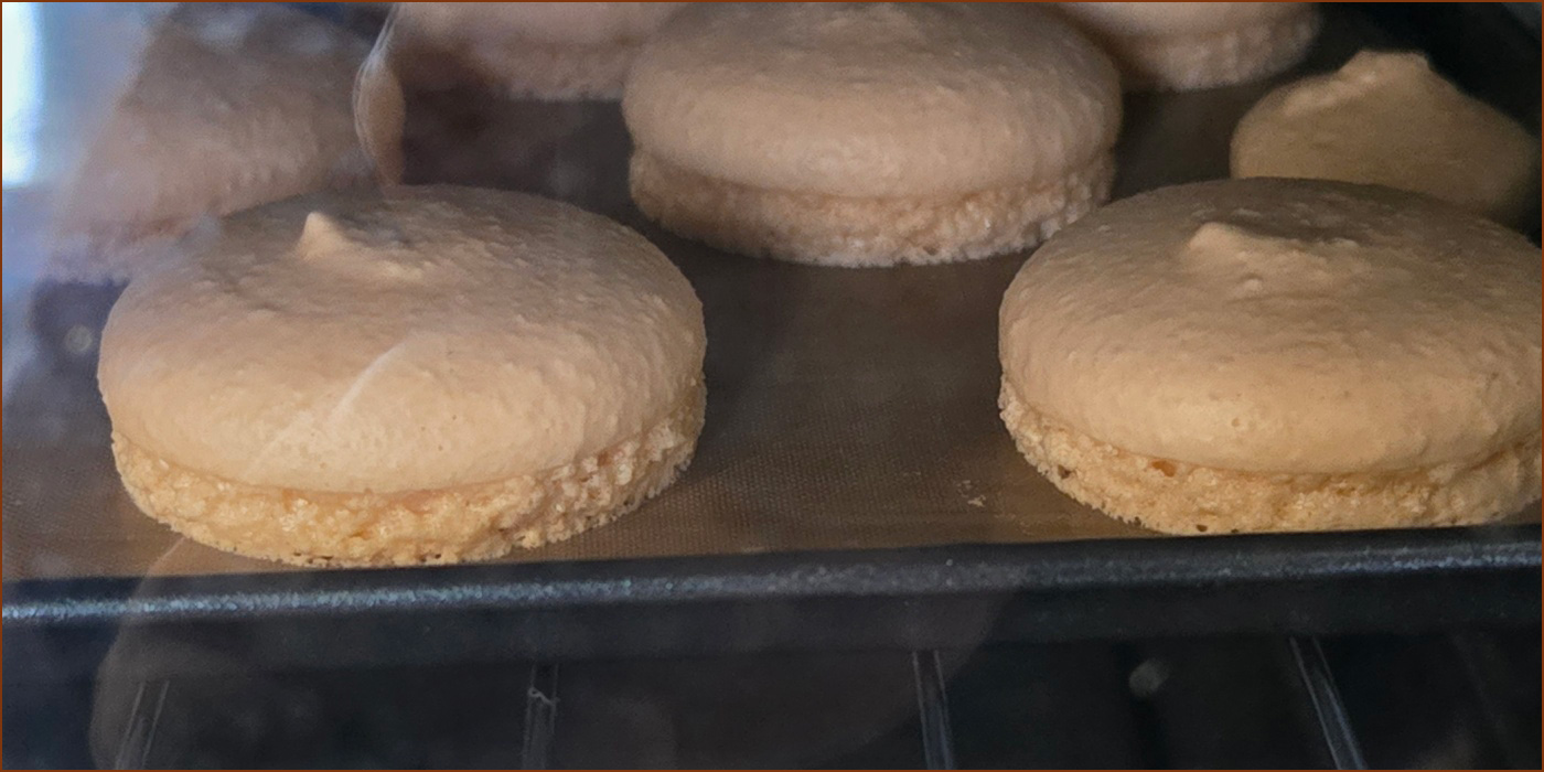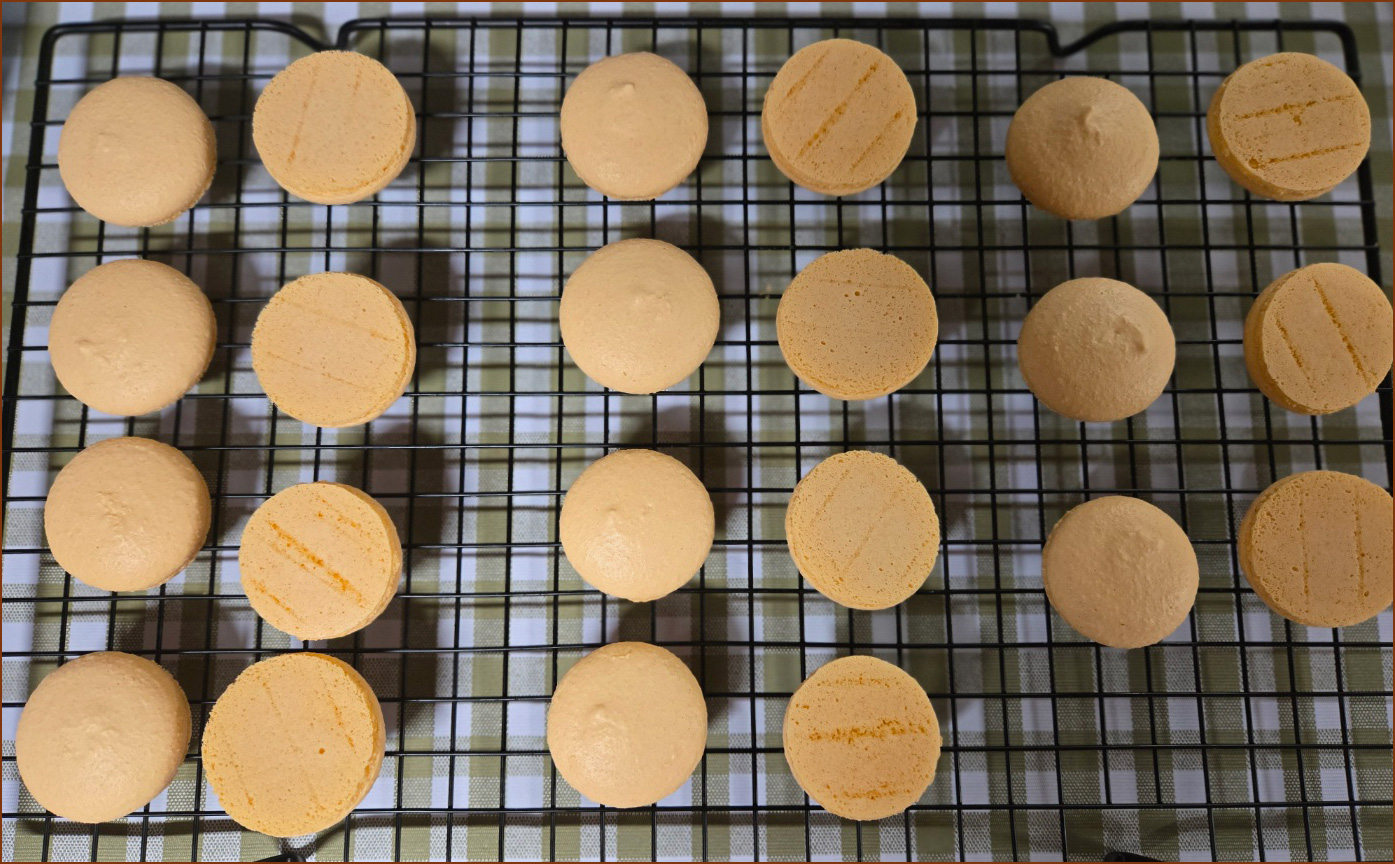 6. 완전히 식힌 마카롱 코끄를 실리콘페이퍼에서 분리한 후 2개씩 짝을 지어 줍니다.
