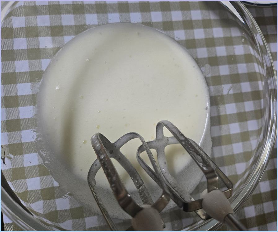 7. 휘핑기로 분리된 흰자를 저속으로 거품내줍니다.