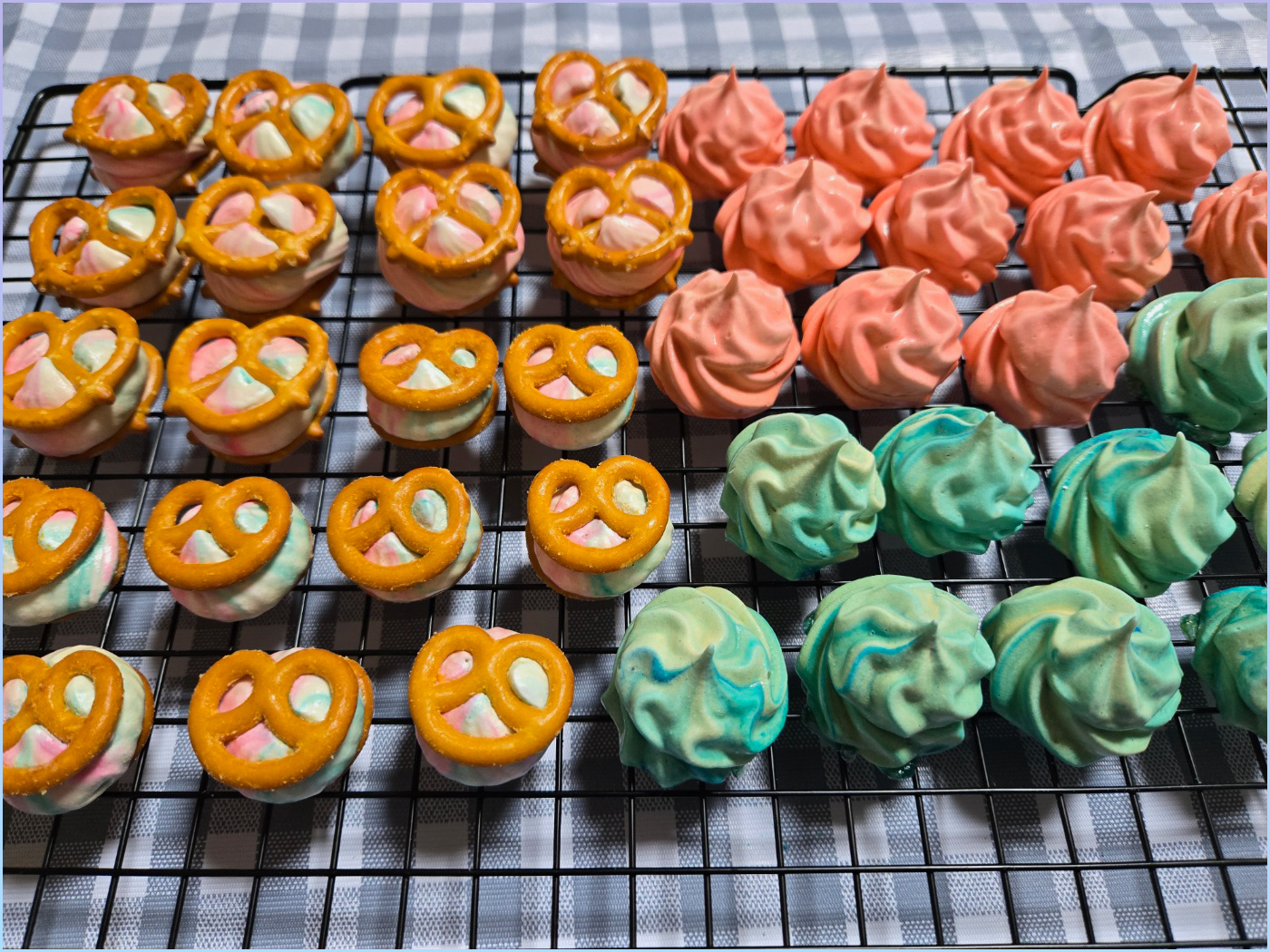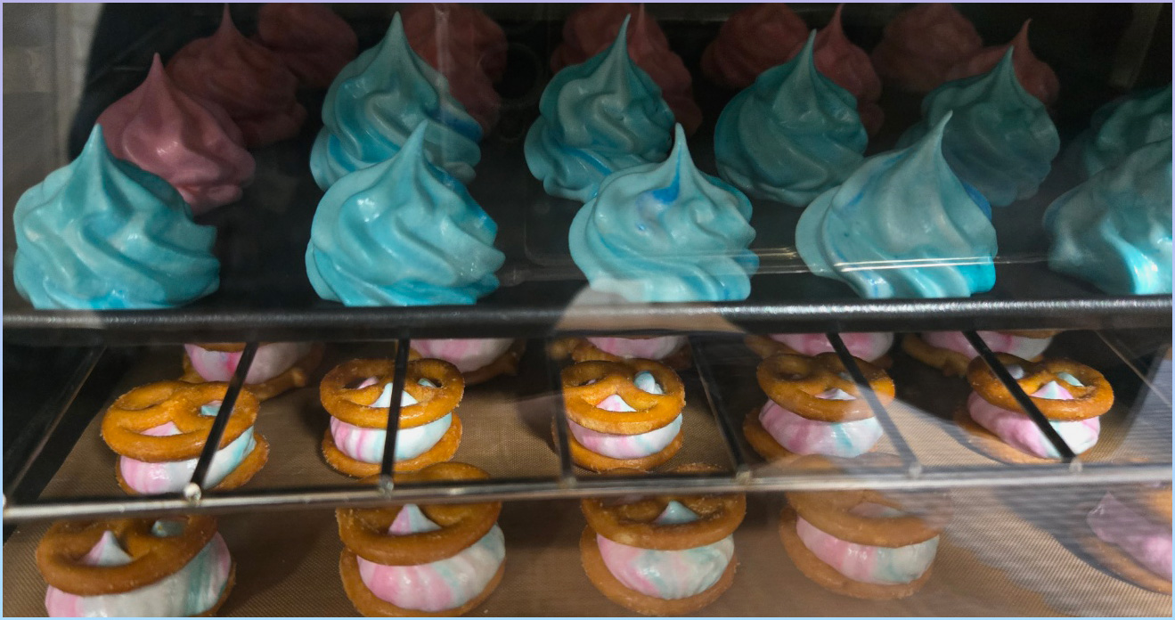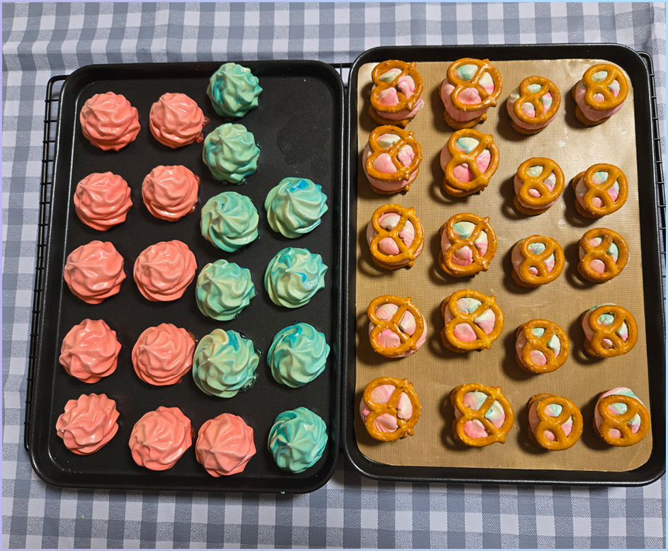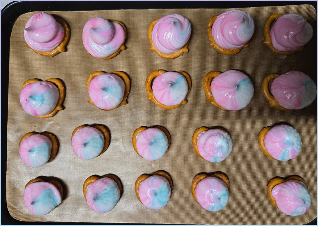 12. 미니 프레첼 위에 머랭을 짜고 위에 미니 프레첼을 올려 샌드해줍니다.