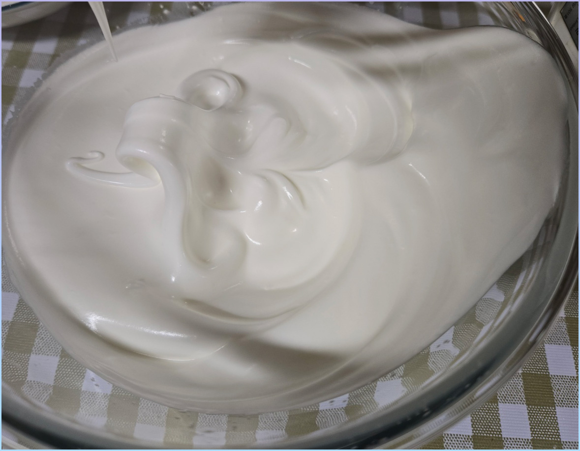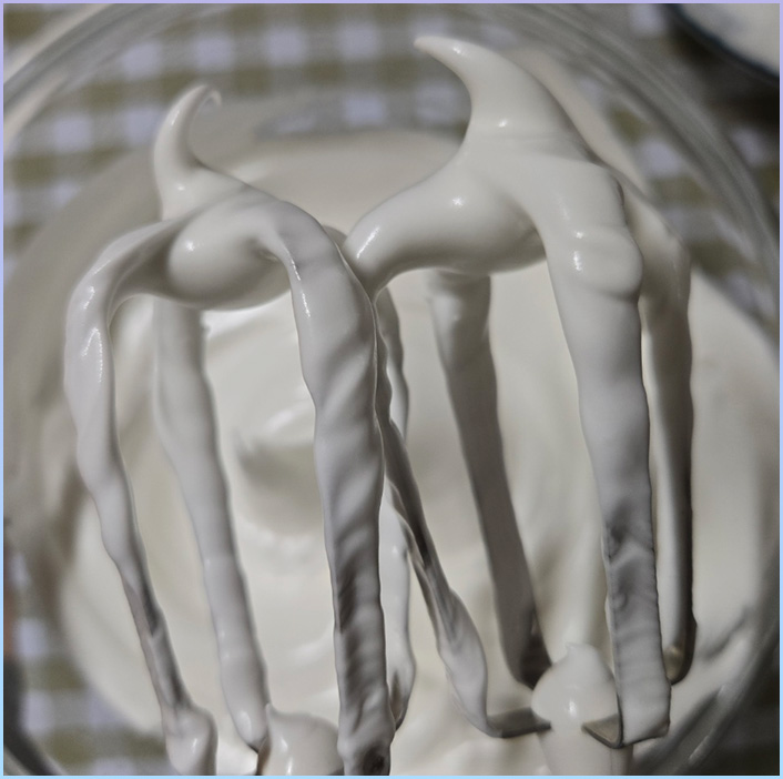 10. 머랭의 끝이 뾰족하지만 흔들림 없이 고정되면 머랭 완성입니다.