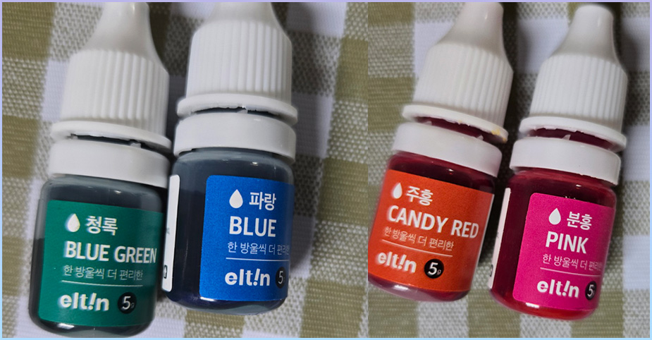 5. 식용색소의 색깔을 정해서 꺼내놓습니다.
