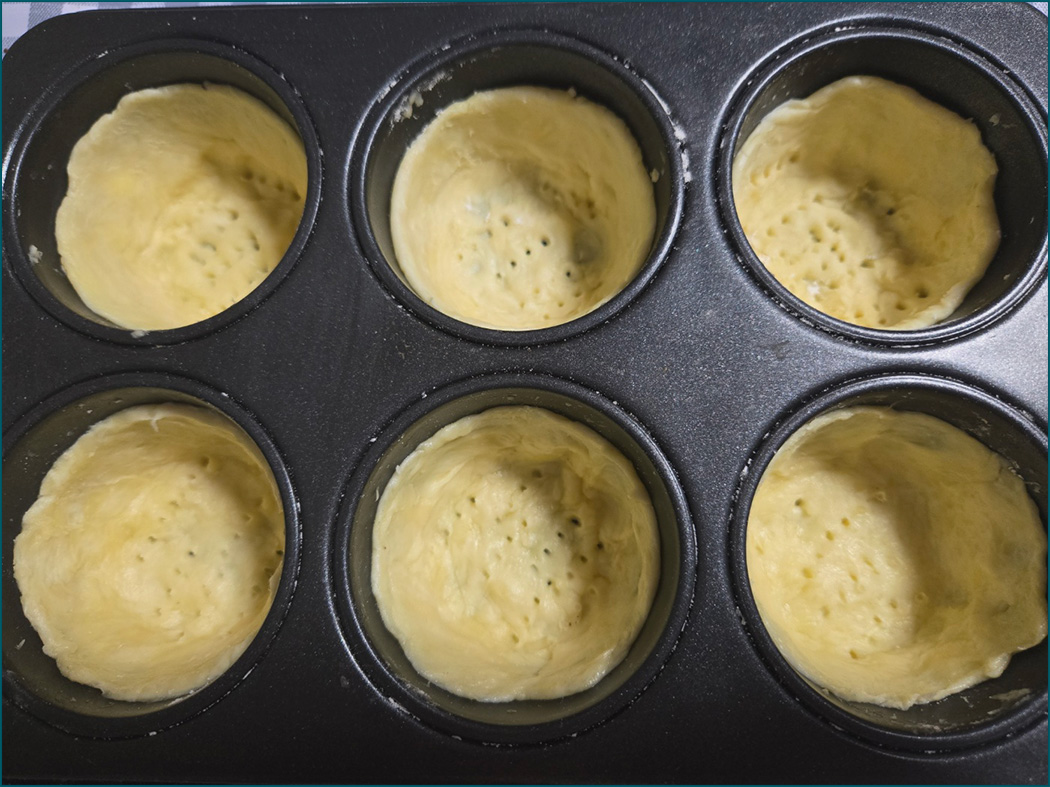 10. 필링을 반죽 높이의 6~7mm 아래까지 채워줍니다.
