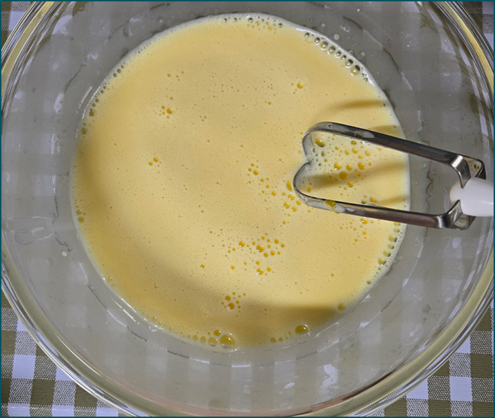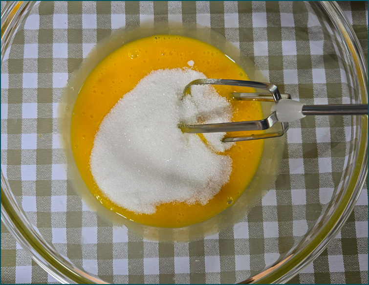 2. 계란 노른자를 휘퍼로 풀어준 다음, 설탕을 넣고 섞어줍니다.