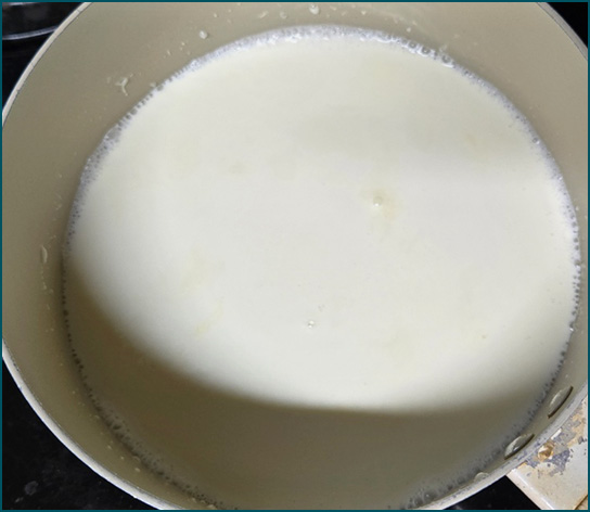 1. 생크림과 우유를 함께 계량하여 가장자리가 끓을 때까지 끓여줍니다.