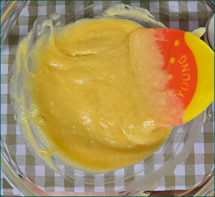 4. 3의 반죽에 2 녹인 버터를 넣고 섞어주세요.