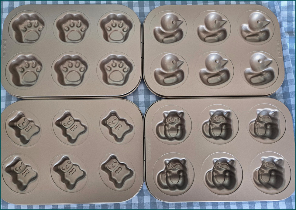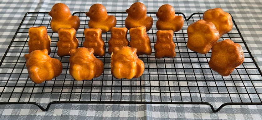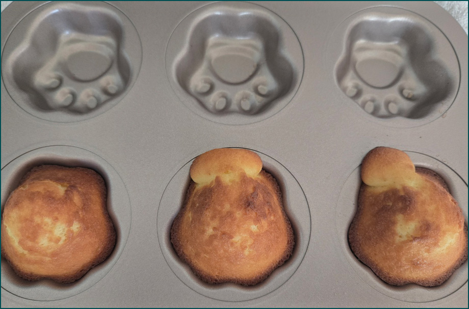 마들렌의 배꼽이 전부 잘 올라와서 캐릭터들을 세워놓을 수 있네요 ㅎㅎ 🤣 너무 귀여운 마들렌들 ㅎㅎ 반죽 팬닝량만 잘 맞춰주시면 정말 어렵지 않을거에요! 모두 즐거운 베이킹하셔요 🥰